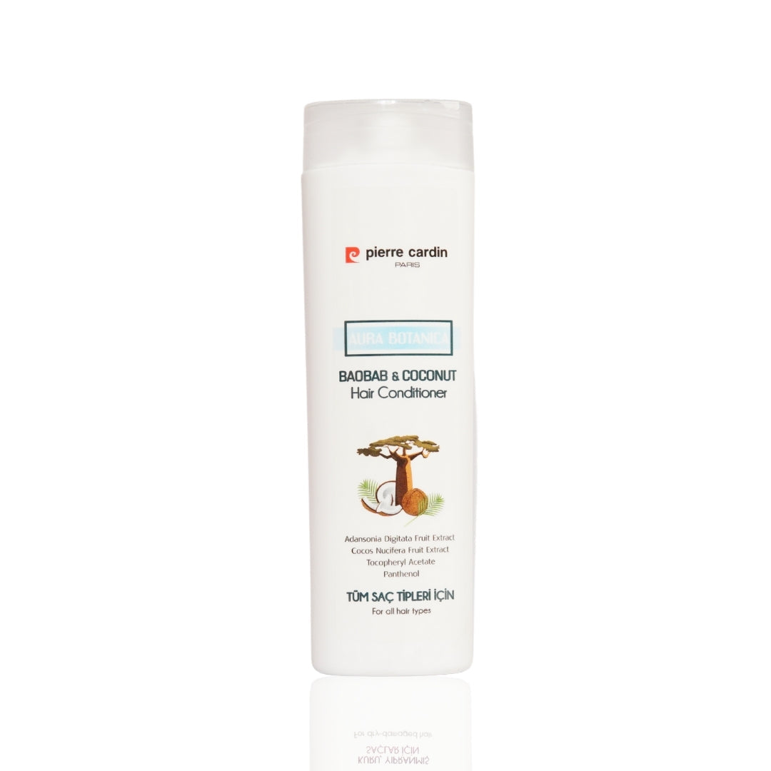 Aura Botanica Conditioner 360ml combines the nourishing properties of baobab and coconut to deeply hydrate and restore hair vitality.
