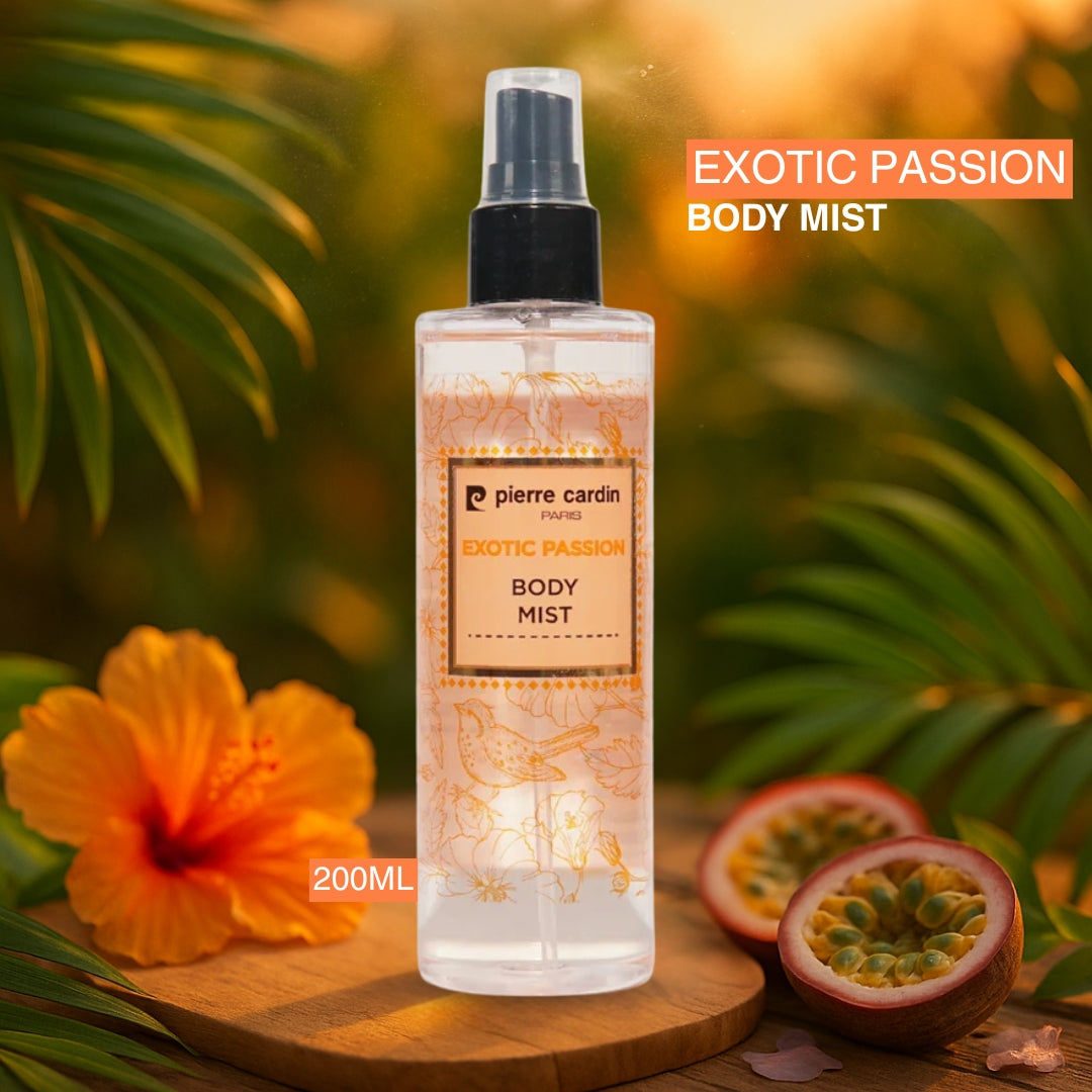 Pierre Cardin Exotic Passion Body Mist helps to make you feel more peaceful with its tropic scent that takes you to paradise.