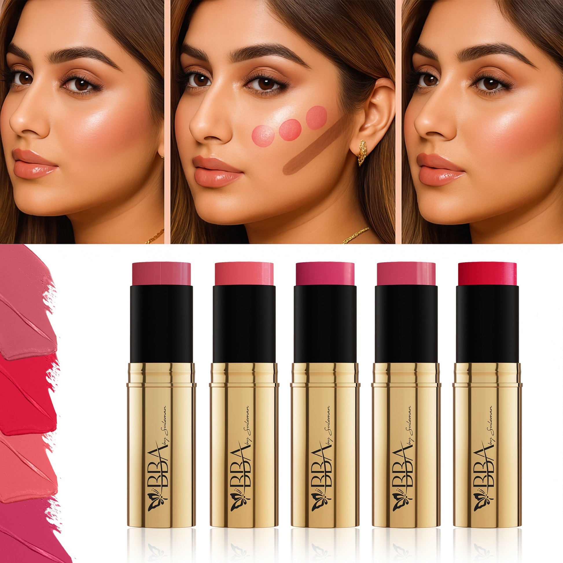A multi-purpose color blush stick that deposits rich pigment