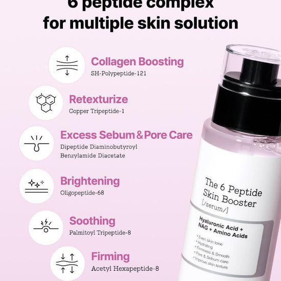 COSRX The 6 Petide Skin Booster is suitable for all skin types and can be used all day and in any season. It is especially ideal for those seeking a lightweight, non-sticky serum to enhance their original skincare routine. Additionally, it is perfect for individuals with complex skin concerns, including those who want to address multiple skin issues like pores, excess sebum, fine lines, and uneven skin texture and tone.