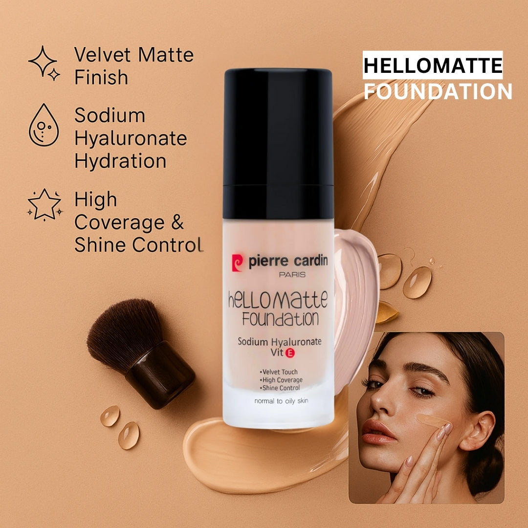 Say goodbye to shine and hello to flawless skin with the Pierre Cardin Hello Matte Foundation. This oil-controlling formula delivers a smooth, matte finish and long-lasting coverage without feeling heavy—perfect for a shine-free, confident look all day.