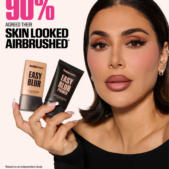 Step 2: Blur with our Easy Blur Foundation, and for extra blurring, use our new Huda Beauty Base Brush to effortlessly blend and buff into the skin.