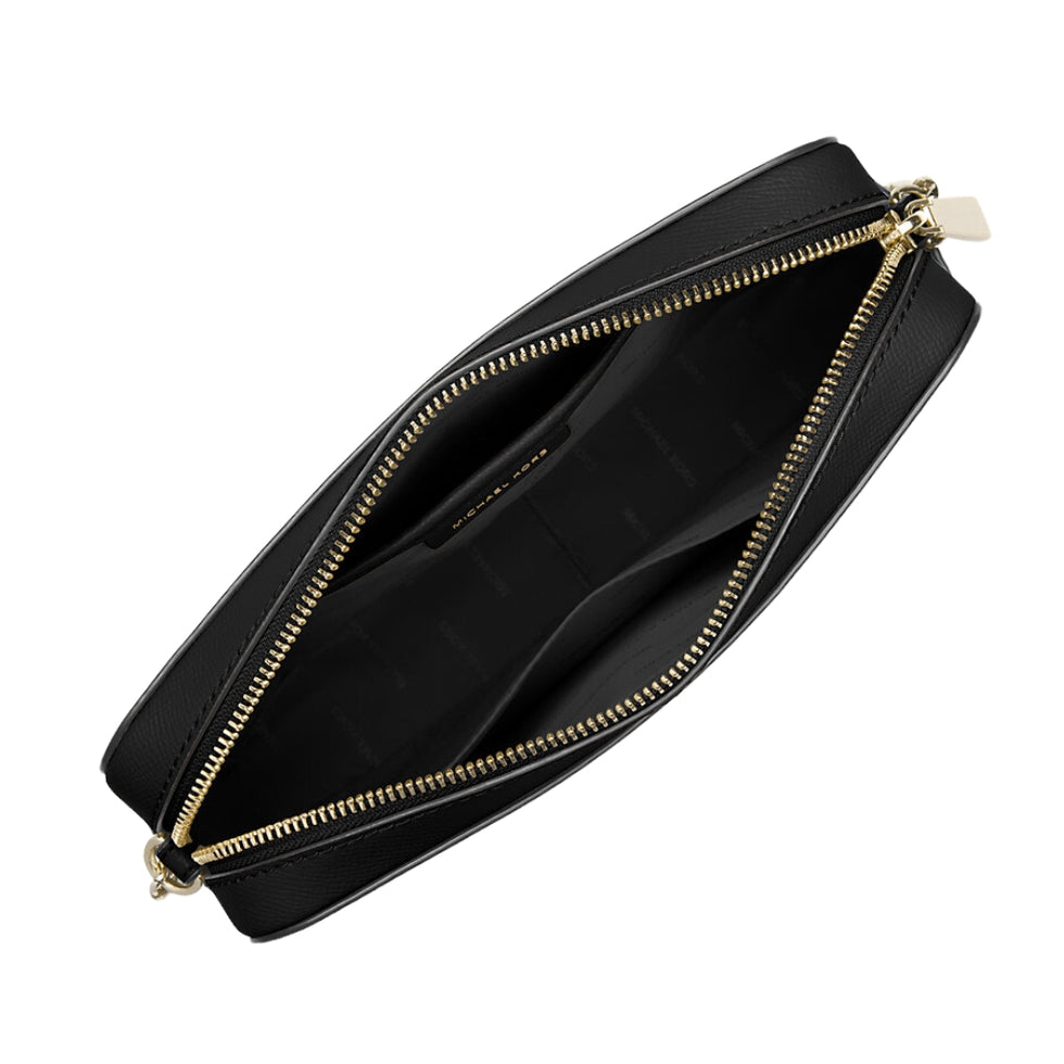 The East-West Crossbody has a sleek black exterior with Golden decorations, resulting in a classic style worn from work to vacation. Don't be deceived by its modest size; the shockingly large interior offers adequate space for daily requirements. The secure zip closure keeps your phone, wallet, cosmetics, and keys organized and easily accessible. The bag includes an adjustable crossbody strap that lets you wear it hands-free across your body or close to your shoulder. This Michael Kors design is composed of high-quality materials, ensuring durability and adding a touch of elegance to your everyday outfit. Shop today and add this timeless piece to your ensemble.