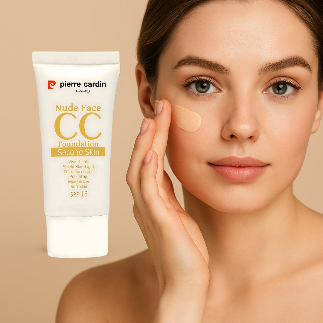 Get a flawless, natural-looking complexion with the Pierre Cardin Nude Face CC Foundation. This lightweight, color-correcting formula evens out skin tone, blurs imperfections, and protects with SPF15 — all while delivering a smooth, radiant finish.