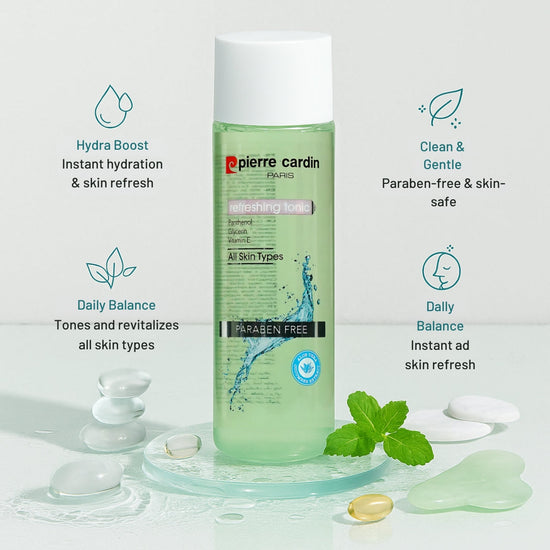 Revive and balance your skin with the Pierre Cardin Refreshing Tonic. This alcohol-free toner gently removes residual impurities, hydrates, and refreshes the skin—leaving it soft, smooth, and ready to absorb your next skincare steps.